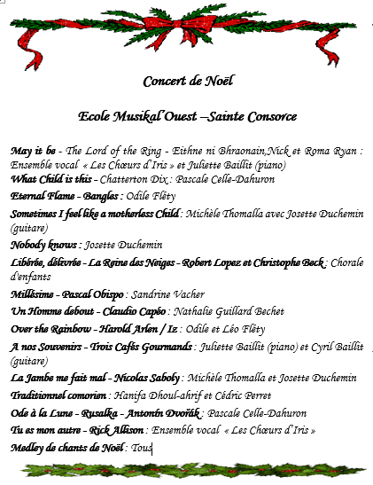 Concert de Noel le 15 Décembre